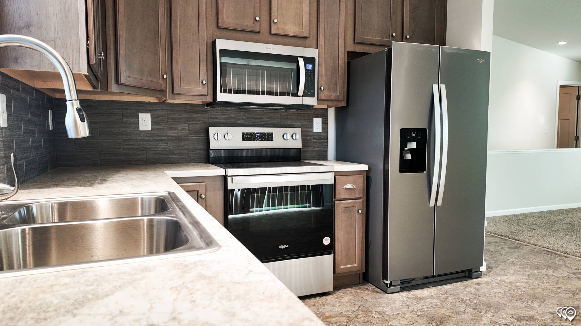 Kitchen Cabinetry: Kensington Maple Mocha or Kensington Dusk Cabinets / Stained Wood Stiles & Face Frames / Crown Molding on Overhead Cabinets