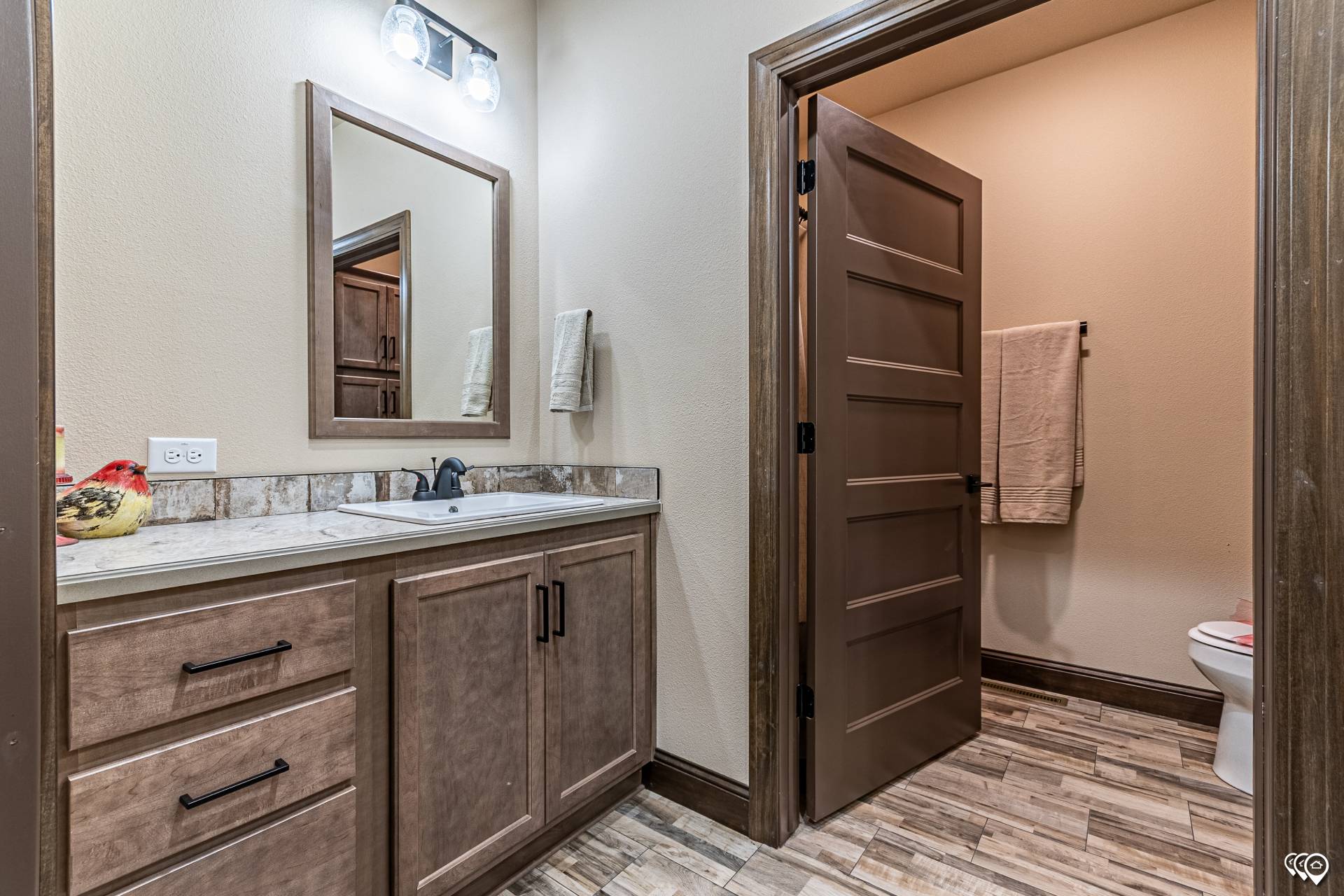 Bathroom Flooring: 16” x 16” Glue-Down Resilient Vinyl Tile Flooring